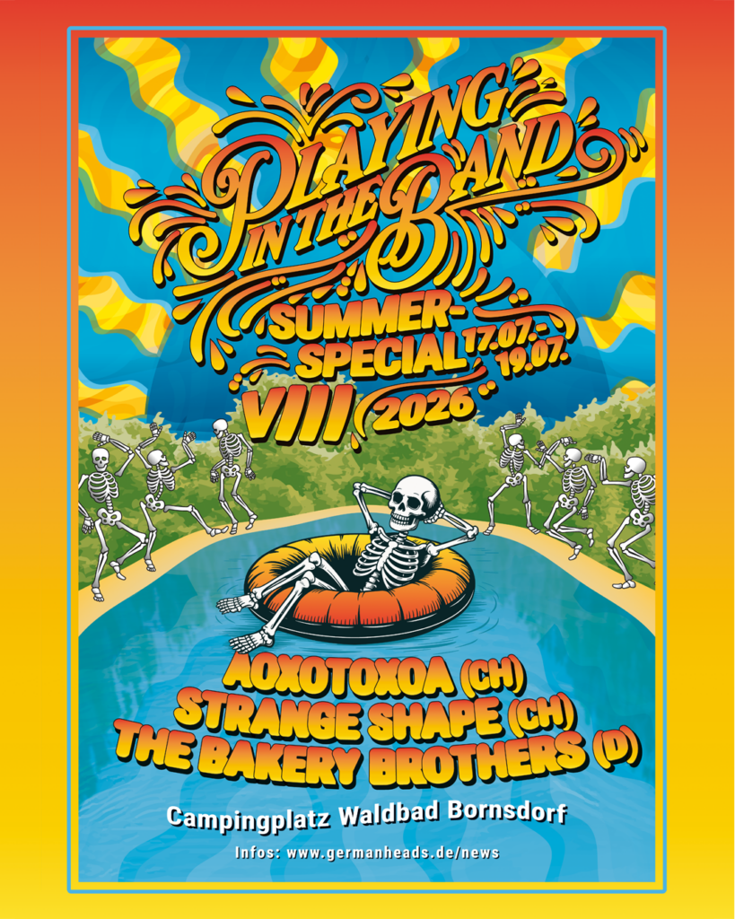 With several hundred performances, including at Playing In The Band in Plauen and at the Outdoor Special, the authentic tribute band AoxoToxoA from Switzerland has long been an integral part of the European deadhead scene. Their concerts let you experience different eras of the Grateful Dead, which they present with a lot of enthusiasm, jams without a net and the constant goal of getting even closer to the role models. At this year’s festival, they will celebrate the finale of their summer tour across Germany.